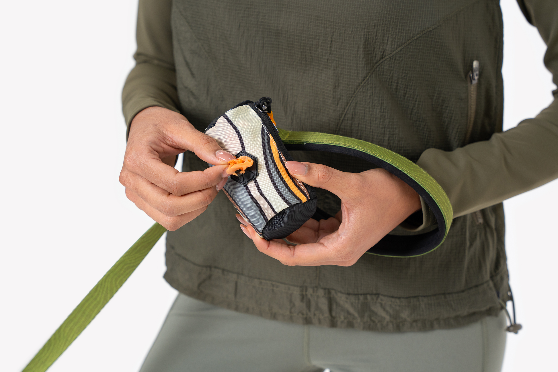 Made from recycled materials, the Scoop Pick Up bag fits standard rolls and is the ideal stash pocket for carrying and dispensing bags.